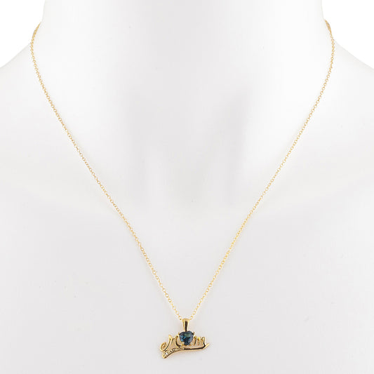 14Kt Gold Natural Blue Mystic Topaz & Diamond Heart Mom Pendant Necklace