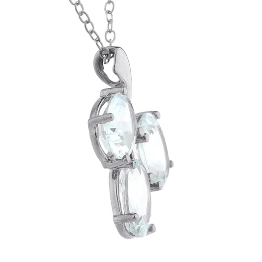 4.5 Ct Genuine Aquamarine Oval Design Pendant .925 Sterling Silver
