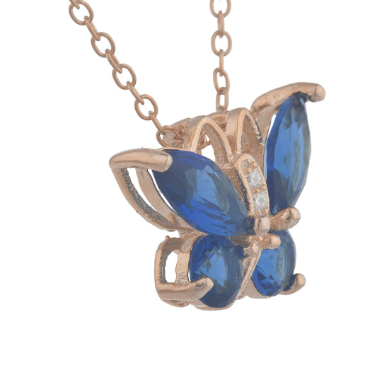 14Kt Rose Gold Plated Blue Sapphire Butterfly Pendant