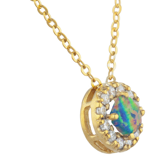 14Kt Gold Genuine Opal Halo Design Pendant Necklace