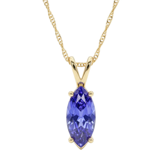 14Kt Gold Natural Aquamarine Marquise Pendant