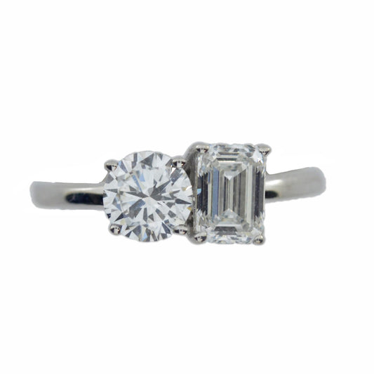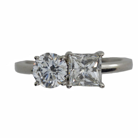 14Kt Gold 1.90 Ct Lab Grown Diamond Square & Round 2 Stone Ring