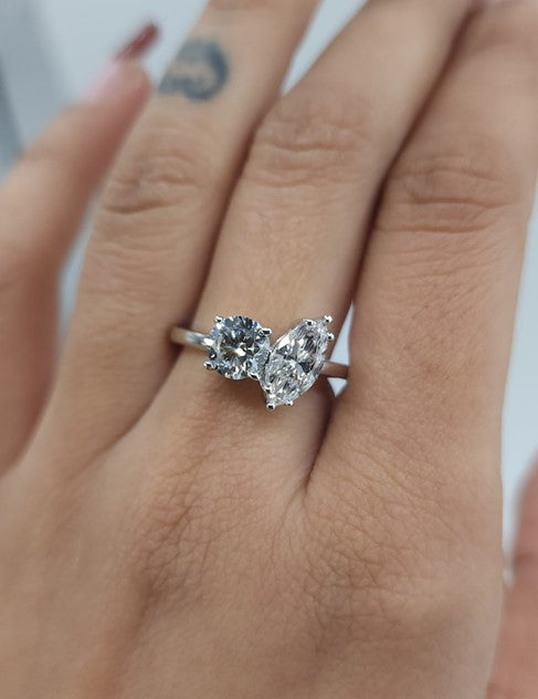 14Kt Gold 1.65 Ct Lab Grown Diamond Marquise & Round 2 Stone Ring
