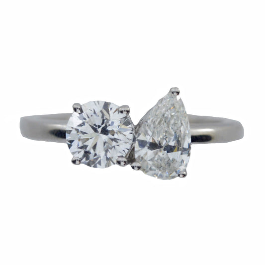 14Kt Gold 1.65 Ct Lab Grown Diamond Teardrop & Round 2 Stone Ring