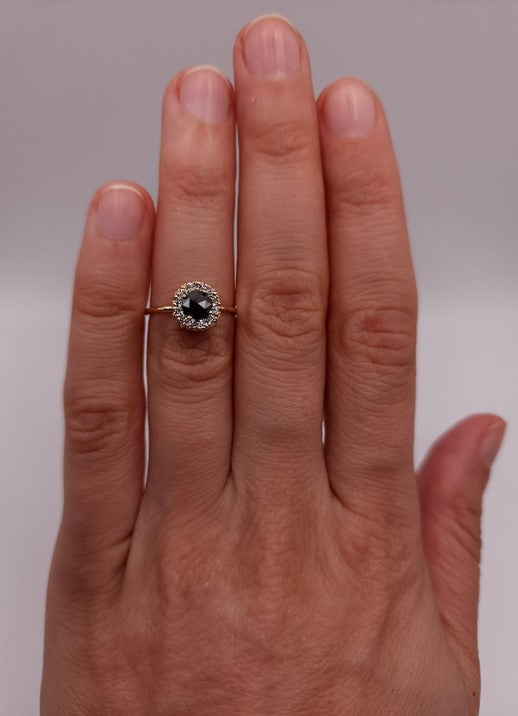 14Kt Gold Natural Rose Cut Halo Black Diamond Ring