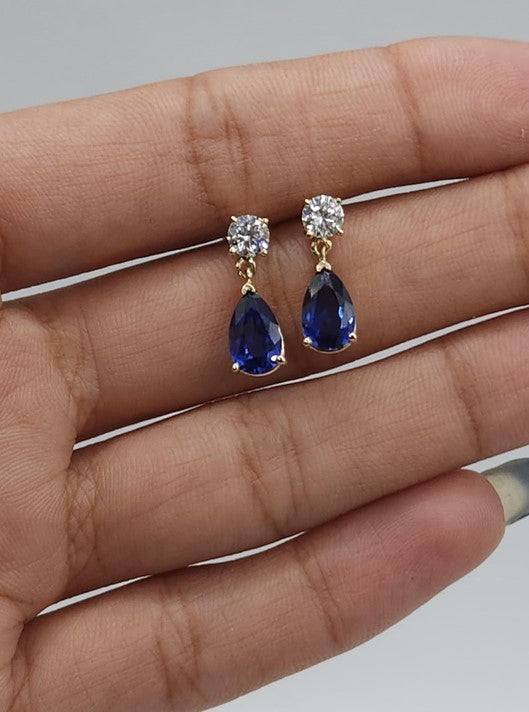 14Kt Gold Blue Sapphire Teardrop Stud Earrings