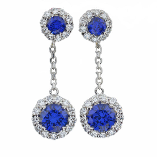 14Kt Gold 1.68 Ct Lab Grown Diamond & Blue Sapphire Halo Dangle Stud Earrings