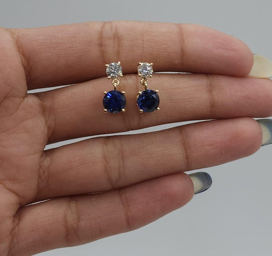 14Kt Gold Blue Sapphire Bezel Dangle Earrings