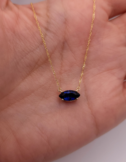 14Kt Gold Blue Sapphire Marquise Pendant Necklace