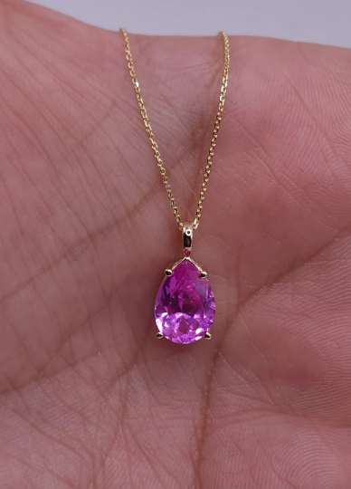 14Kt Gold Pink Sapphire Teardrop Pendant Necklace