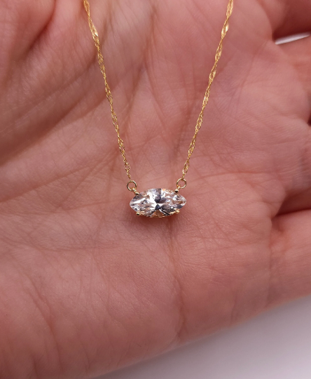 14Kt Gold White Sapphire Marquise Pendant Necklace