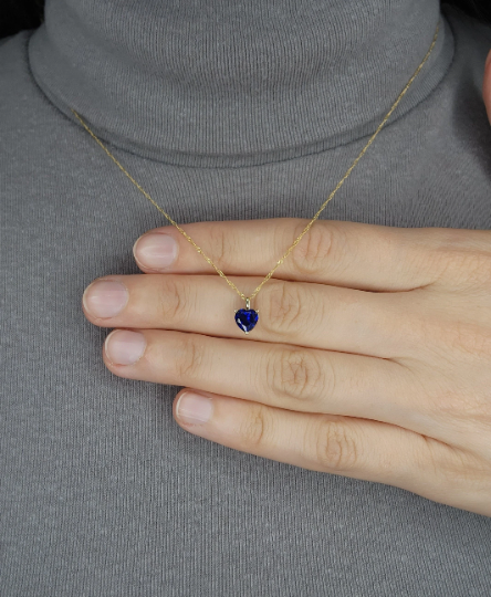 14Kt Gold Blue Sapphire Heart Pendant Necklace