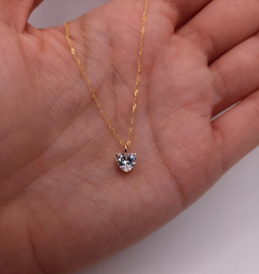 14Kt Gold White Sapphire Heart Pendant Necklace