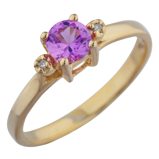 14Kt Gold 0.50 Ct Pink Sapphire & Diamond Round Ring