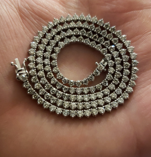 14Kt Gold 7.35 Ct 17 Inch 3 Prong Lab Grown Diamond Tennis Necklace