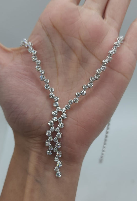 14Kt Gold 4.10 Ct 20-inch Lab Grown Diamond Tennis Necklace, Half Diamond Drop Tennis Necklace, Beautiful White Diamonds