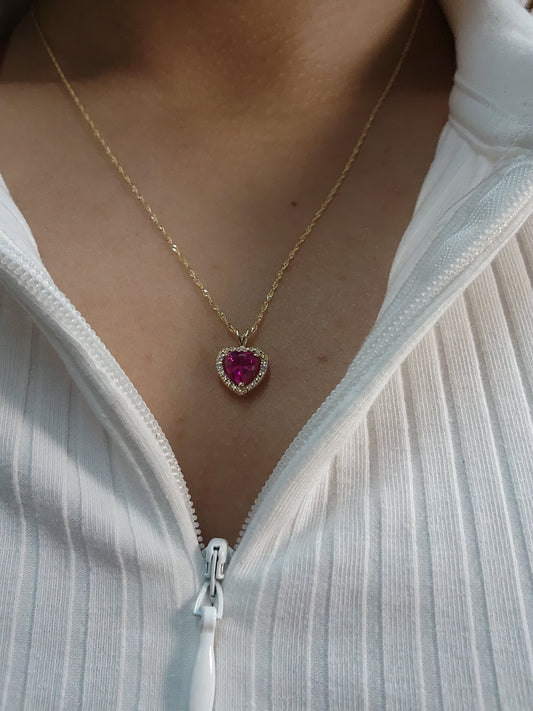 14Kt Gold Created Ruby & Diamond Heart Pendant Necklace
