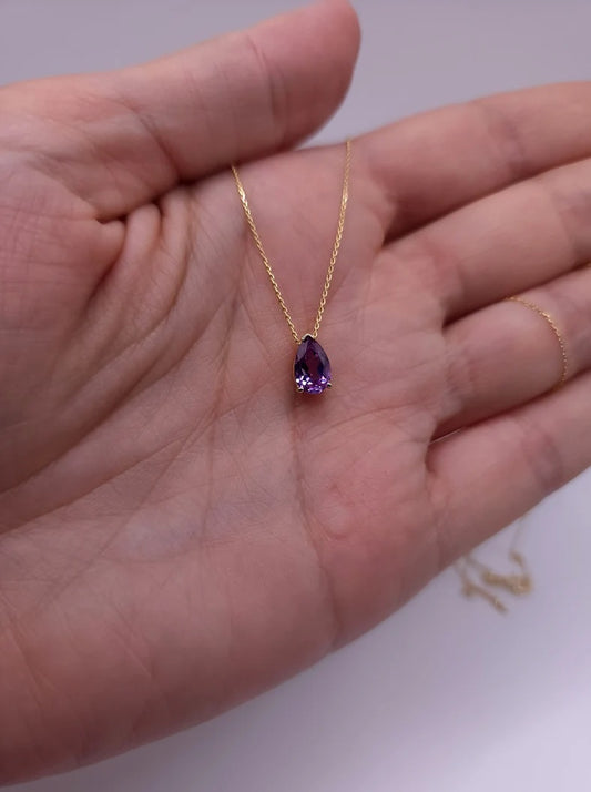 14Kt Gold Alexandrite Teardrop Necklace Pendant