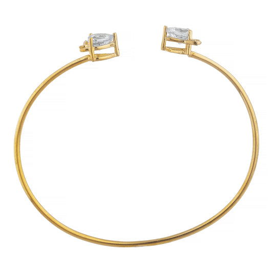 White Sapphire & Diamond Devil Heart Bangle Bracelet 14Kt Yellow Gold Rose Gold Silver