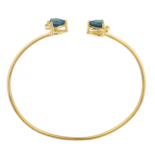 London Blue Topaz & Diamond Devil Heart Bangle Bracelet 14Kt Yellow Gold Rose Gold Silver