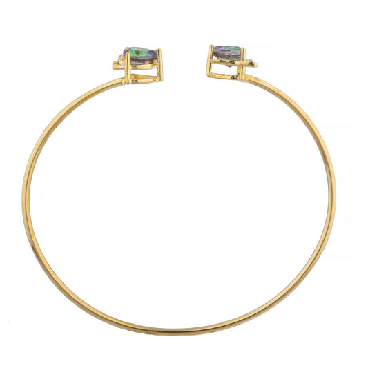 Natural Mystic Topaz & Diamond Devil Heart Bangle Bracelet 14Kt Yellow Gold Rose Gold Silver