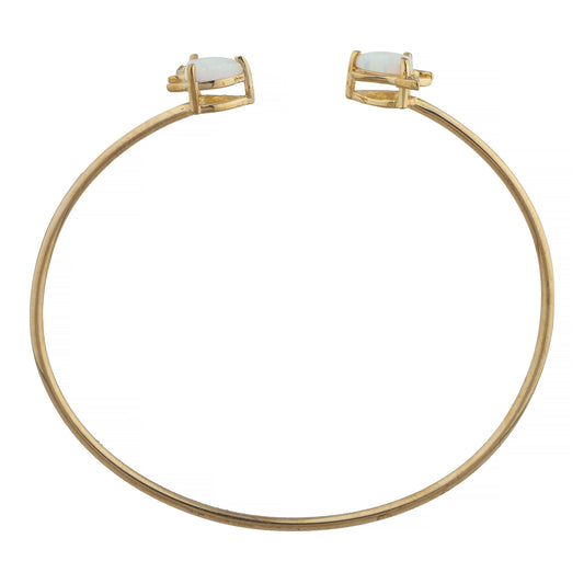 Genuine Opal & Diamond Devil Heart Bangle Bracelet 14Kt Yellow Gold Rose Gold Silver
