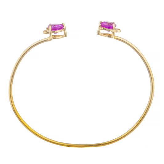 Pink Sapphire & Diamond Devil Heart Bangle Bracelet 14Kt Yellow Gold Rose Gold Silver