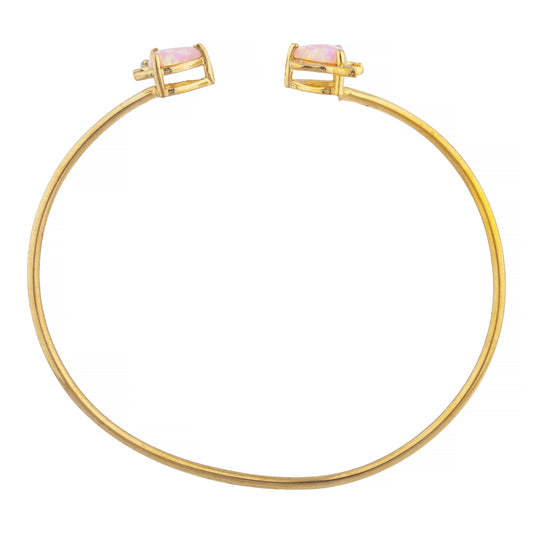 Pink Opal & Diamond Devil Heart Bangle Bracelet 14Kt Yellow Gold Rose Gold Silver