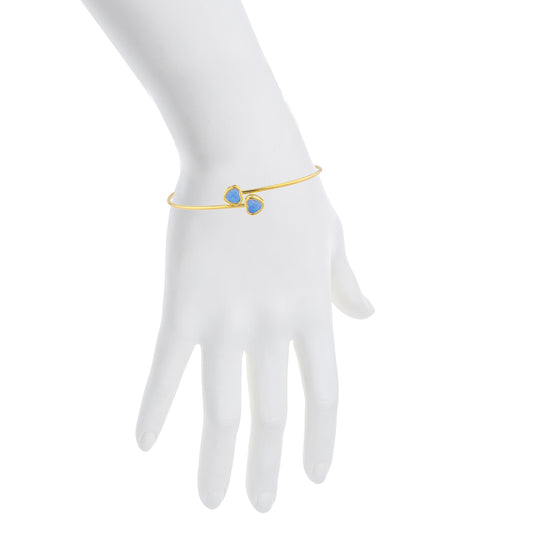14Kt Gold Blue Opal Heart Bezel Bangle Bracelet