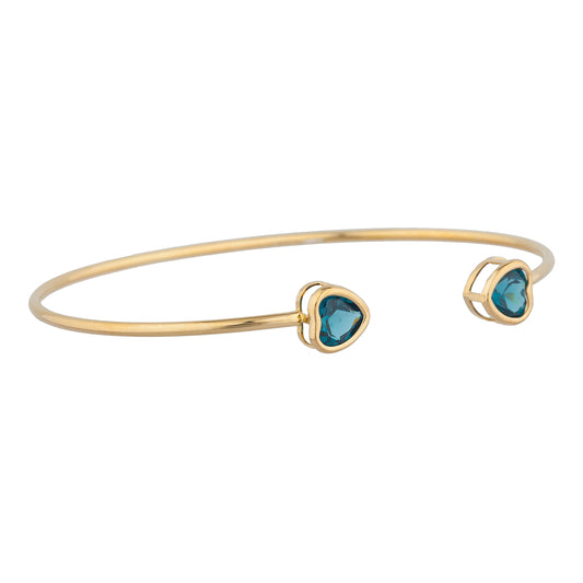 14Kt Gold London Blue Topaz Heart Bezel Bangle Bracelet