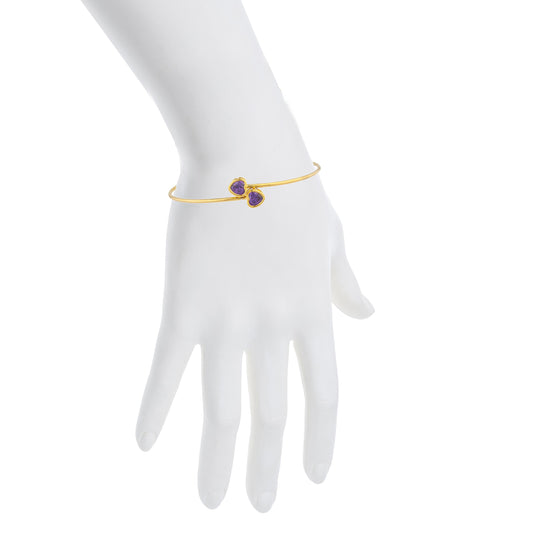14Kt Gold Amethyst Heart Bezel Bangle Bracelet