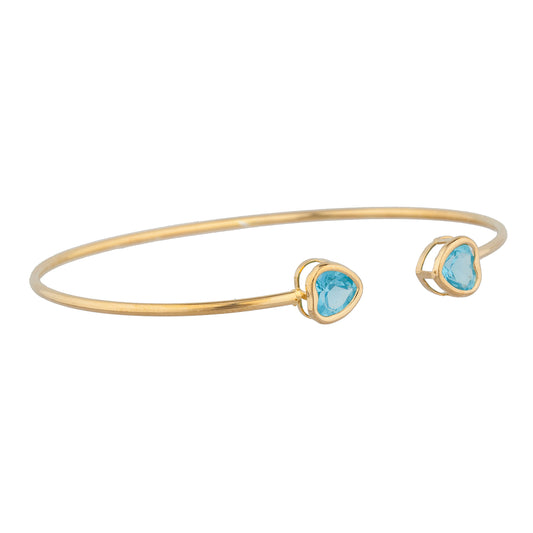 14Kt Gold Blue Topaz Heart Bezel Bangle Bracelet