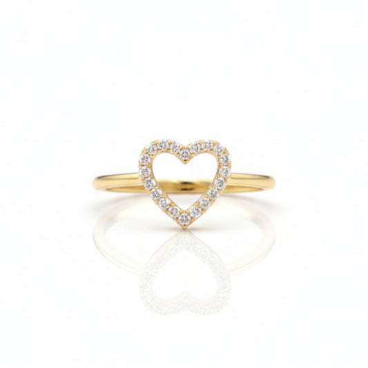 14Kt Gold Genuine Natural Diamond Open Heart Design Ring