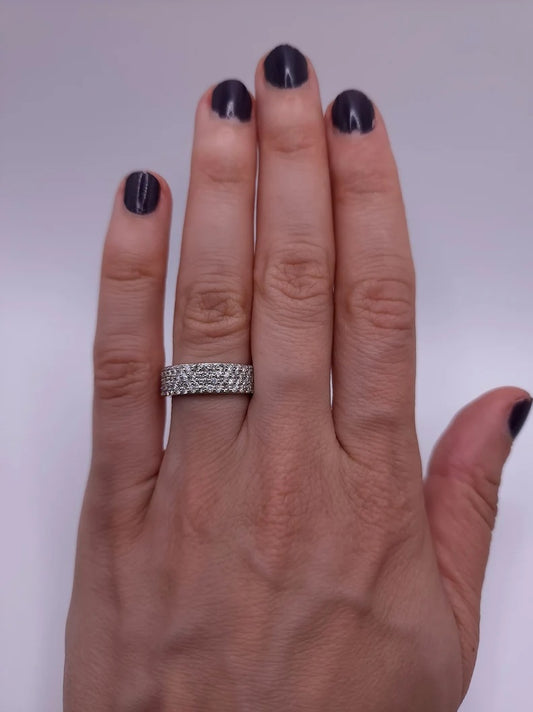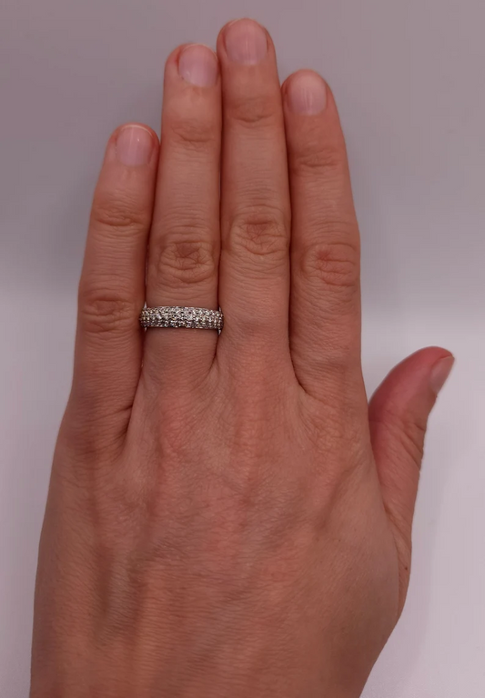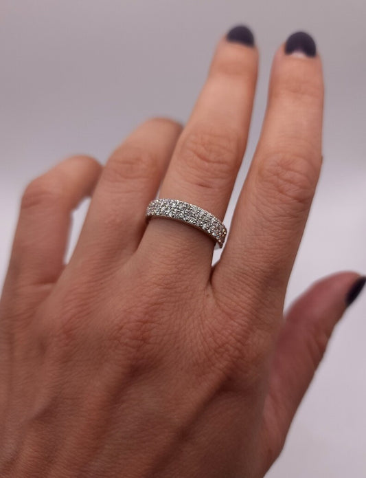 14Kt Gold 0.75 Ct 3 Row Half Eternity Genuine Natural Diamond Wedding Band