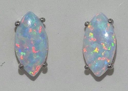 10x5mm Opal Marquise Stud Earrings .925 Sterling Silver