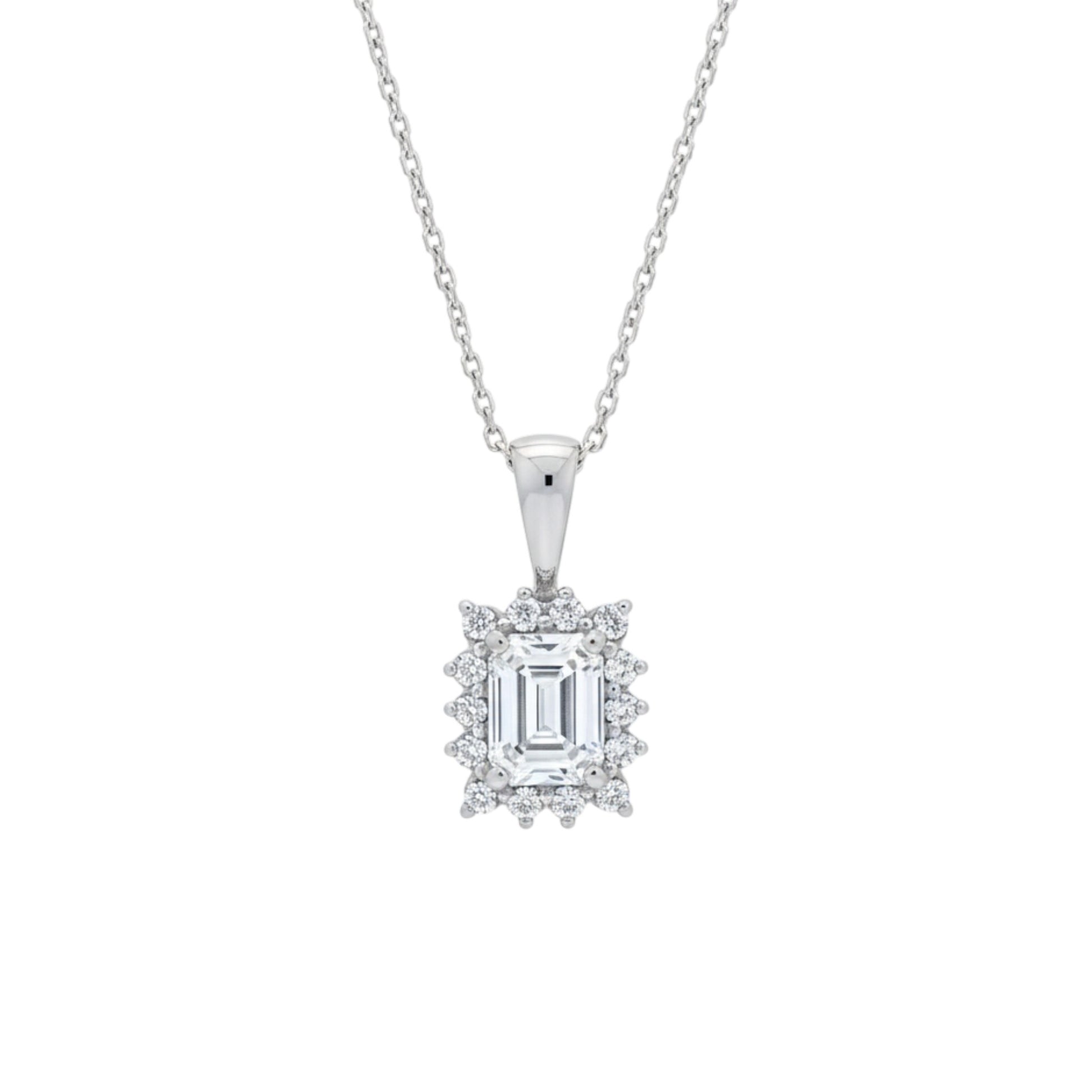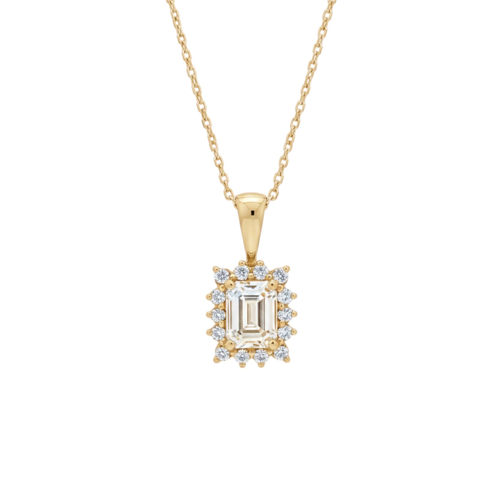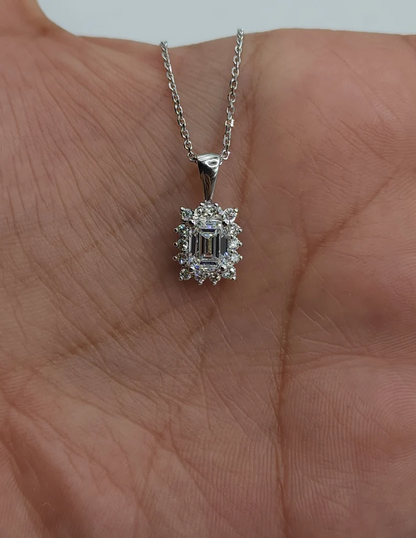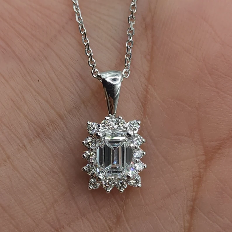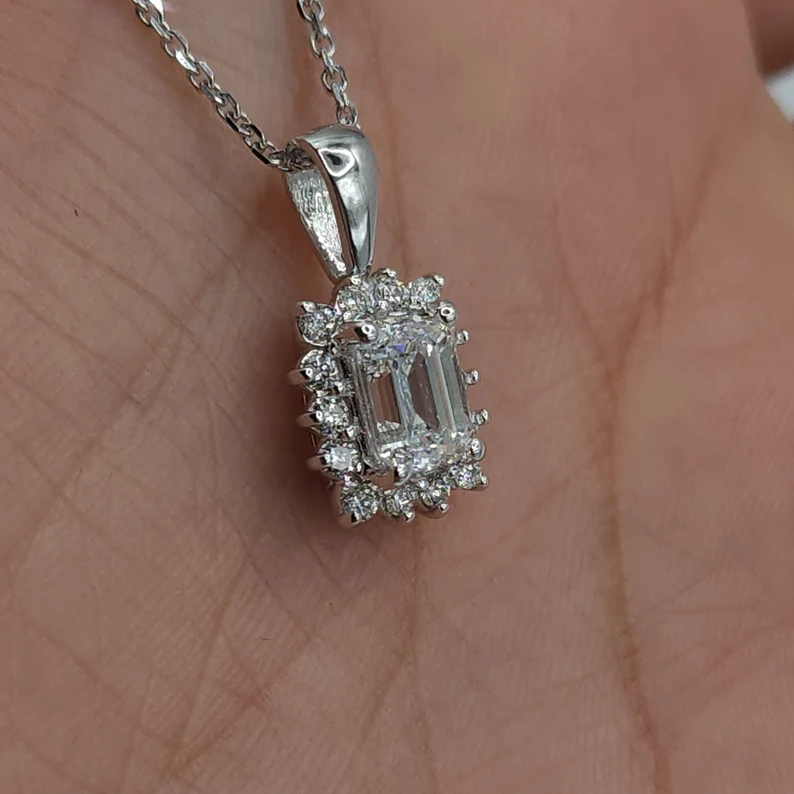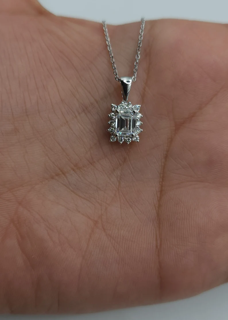 14K Gold 1.19 Ct Lab Grown Diamond Emerald Cut Solitaire Pendant Necklace