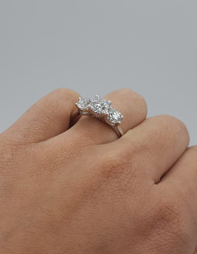14K Gold Lab Grown 1.50 Ct 3 Stone Diamond Ring