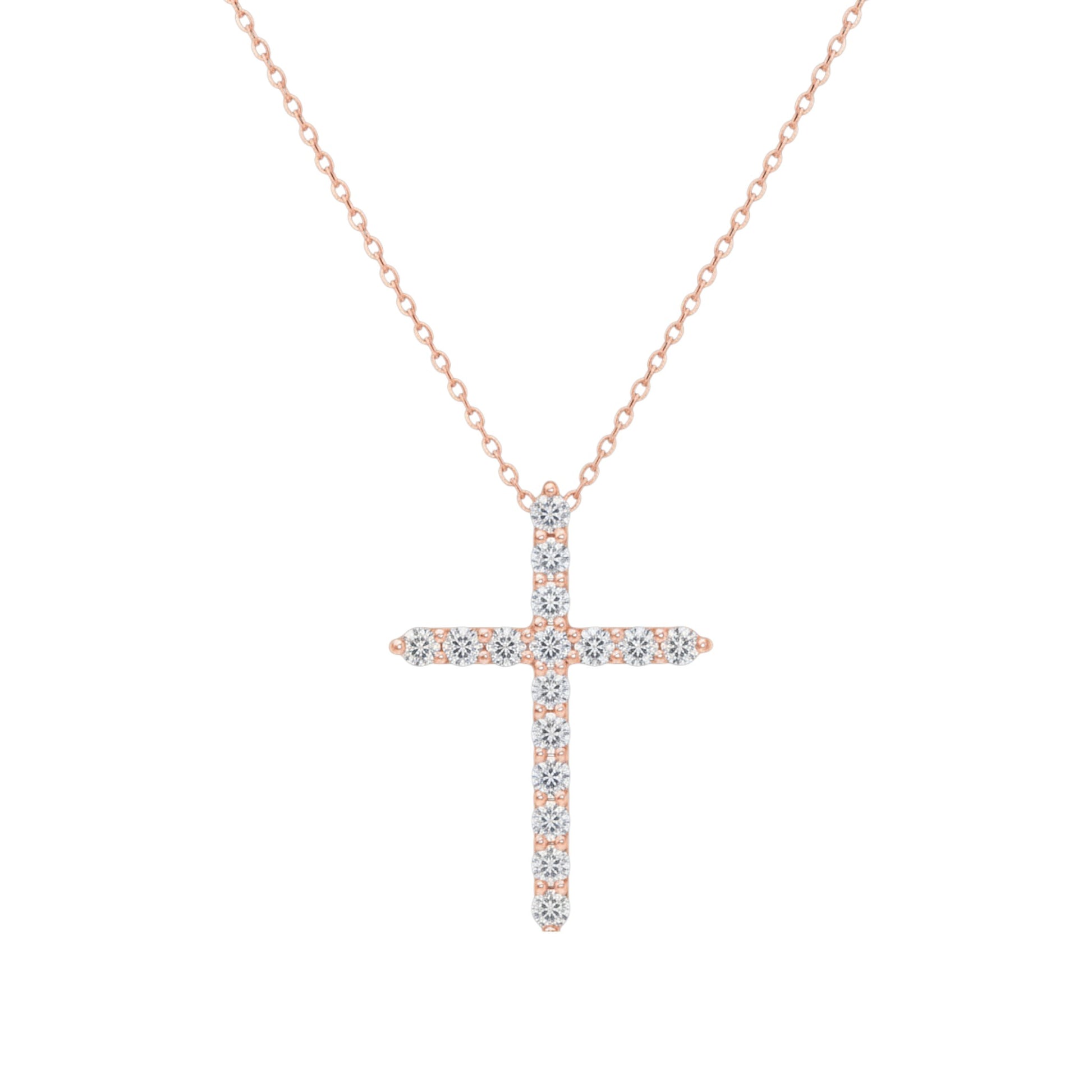 14Kt Gold 0.25 Ct Genuine Natural Diamond Cross Pendant Necklace