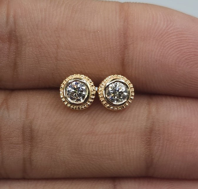 14Kt Gold 0.30 Ct Genuine Natural Diamond Stud Bezel Earrings