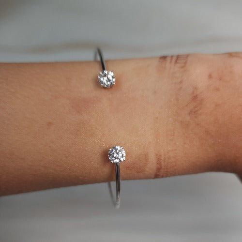 This is a beautiful Lab Grown diamond design bangle. It is set in real 14Kt Gold. The bangle has a thin wire to make it flexible so it is easy to put on and take off and comfortable to wear. You can choose if you want 14Kt White Gold, 14Kt Yellow Gold or 14Kt Rose Gold.