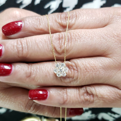14Kt Gold 0.70 Ct Lab Grown Diamond Cluster Pendant Necklace