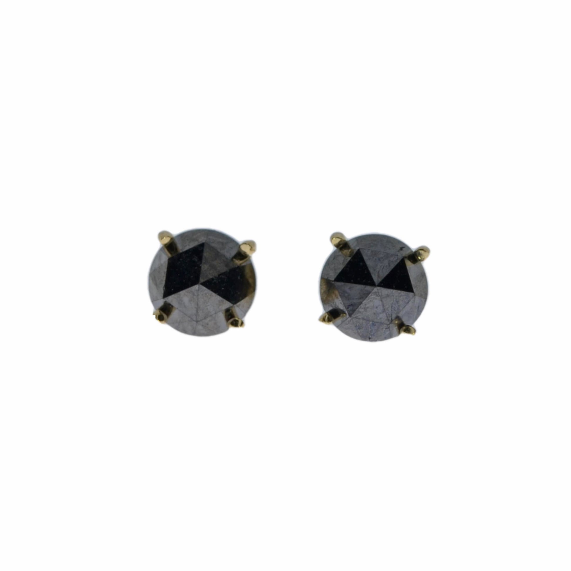 14Kt Gold 0.75 Ct Rose Cut Black Diamond Round Stud Earrings