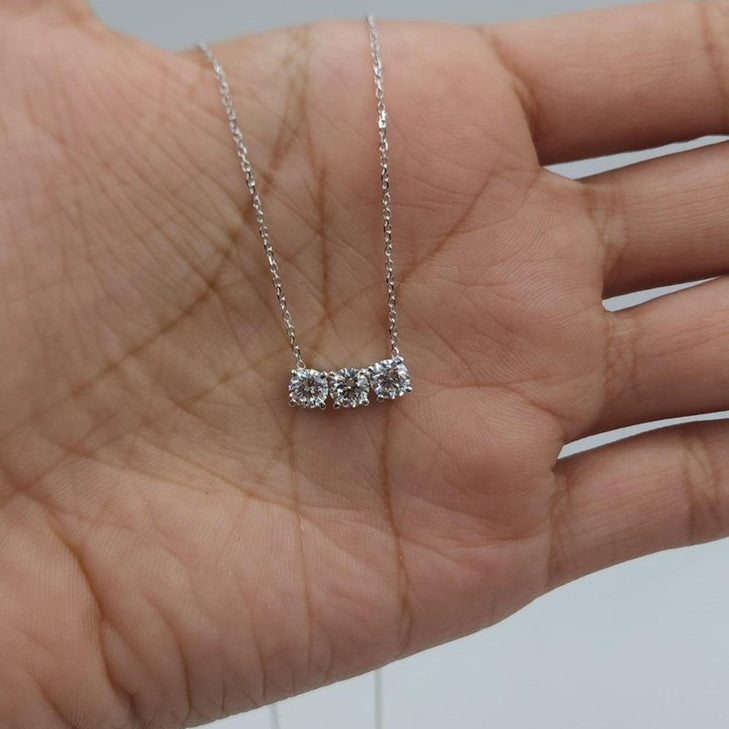 14Kt Gold 0.90 Ct 3 Stone Lab Grown Diamond Pendant Necklace