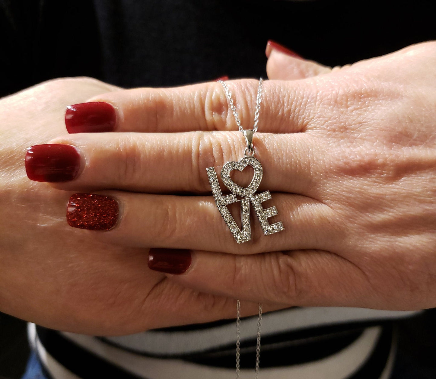 This is a beautiful diamond Love Heart design pendant. It is set in real solid 14Kt Gold and the chain is 14Kt Gold as well. You can choose if you want 14Kt White Gold, 14Kt Yellow Gold or 14Kt Rose Gold.