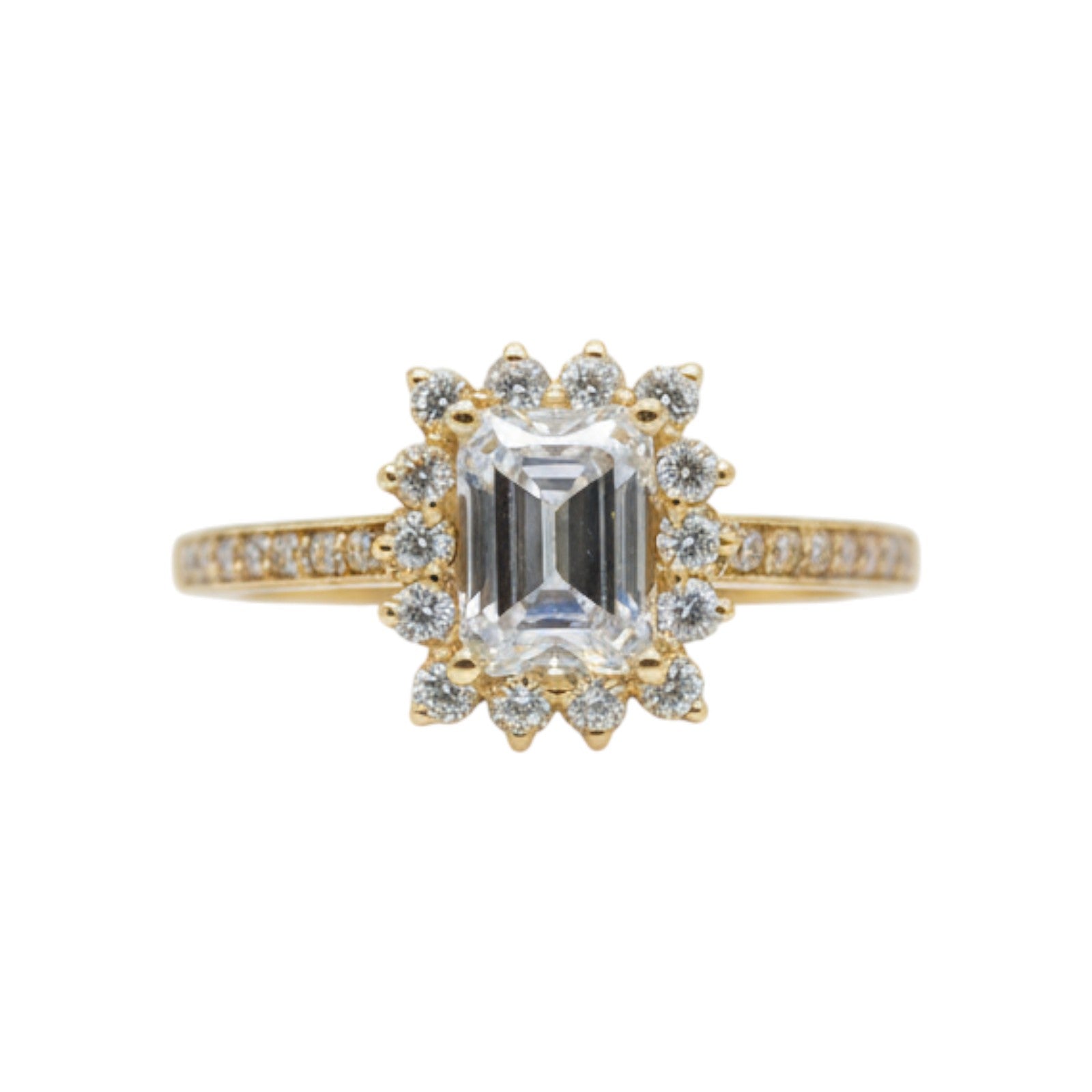 14Kt Gold 1.38 Ct Lab Grown Emerald Cut Diamond Halo Engagement Ring