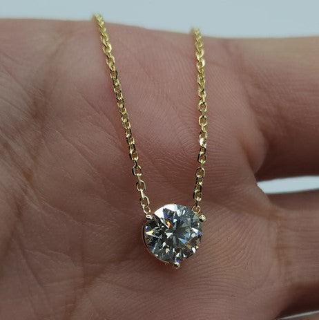 14Kt Gold 1 Ct Lab Grown Diamond 3 Prong Pendant Necklace