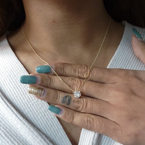 14Kt Gold 1 Ct Lab Grown Diamond 6 Prong Solitaire Pendant