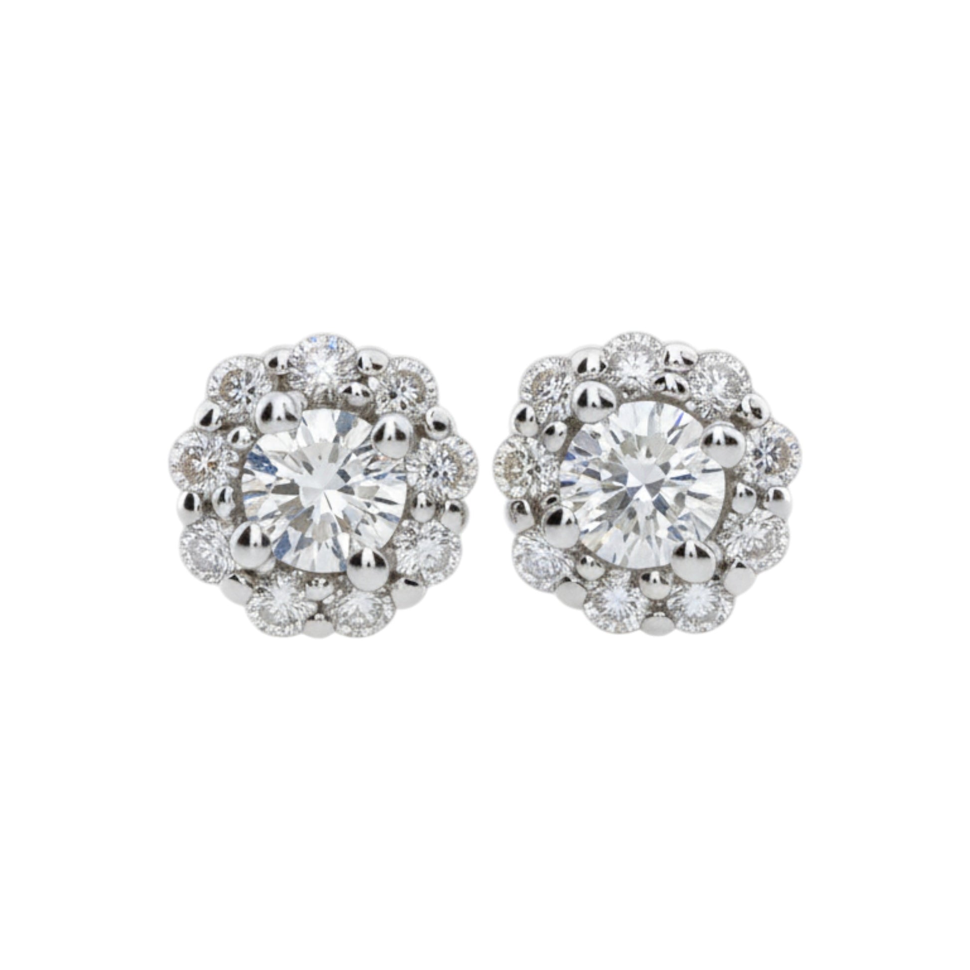 14Kt Gold 2.02 Ct Genuine Natural Diamond Halo Stud Earrings