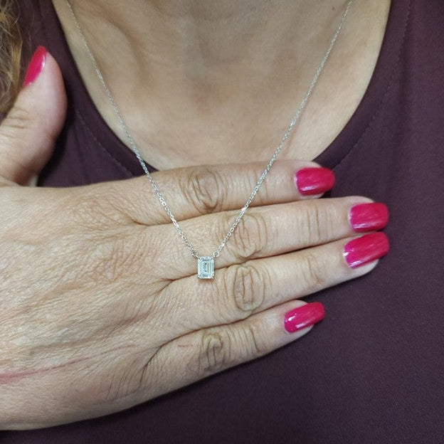 14Kt Gold 2 Ct Emerald Cut Lab Grown Diamond Pendant