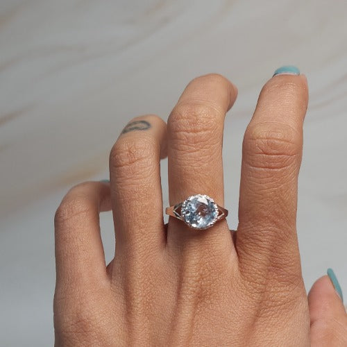 This is a beautiful ring in a unique design set in real Solid 14Kt Gold. We have this ring design available with all gemstones that you can see in our store. You can choose if you want it in 14Kt White Gold, 14Kt Yellow Gold or 14Kt Rose Gold.